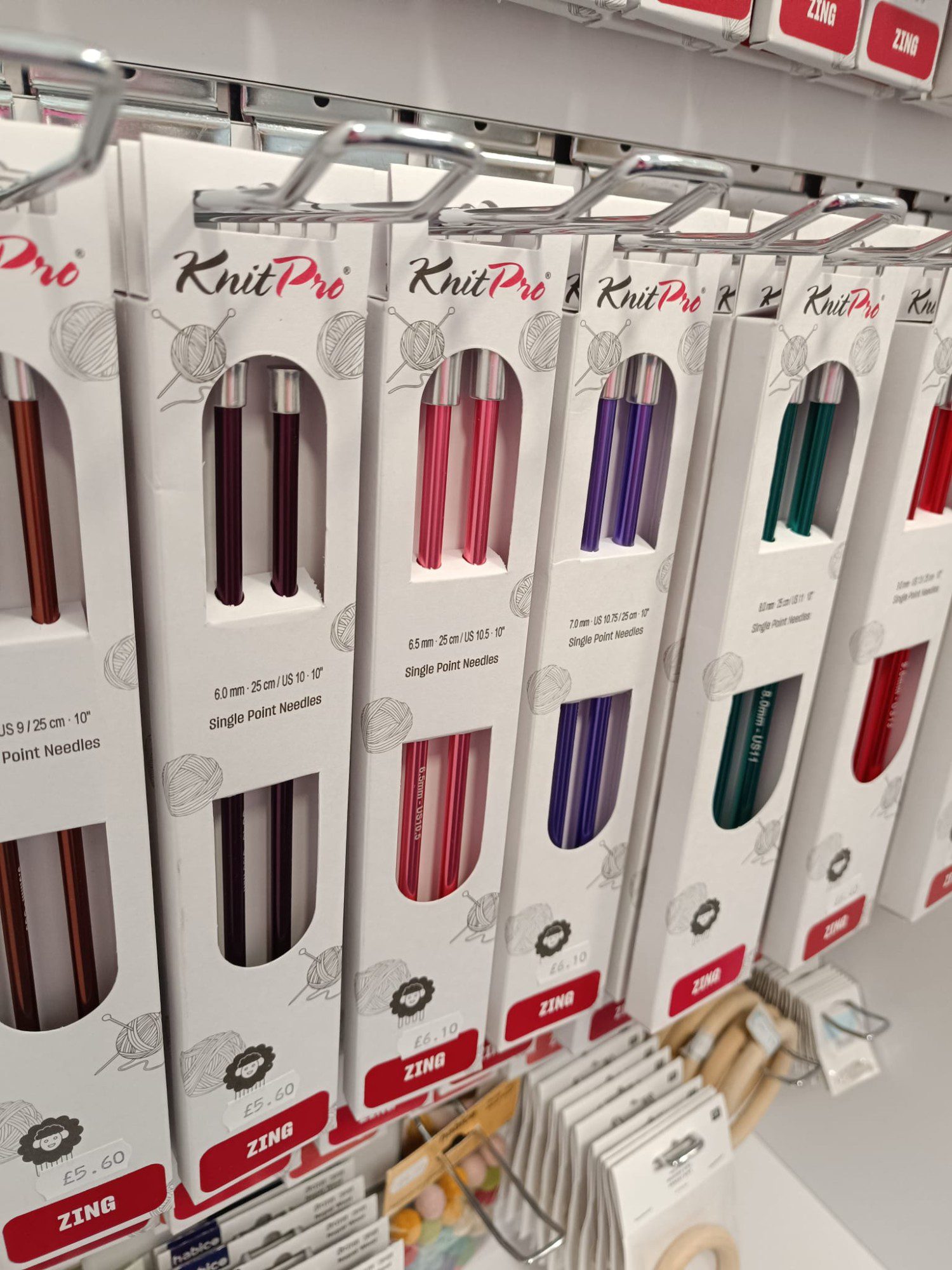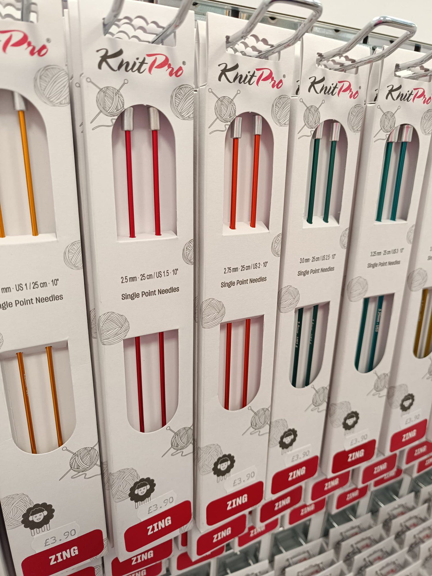 First, we have the vibrant KnitPro Zing Single Pointed Needles available in lengths of 25cm, 30cm, and 35cm. These aluminium knitting pins come in a spectrum of bright, lively colours.  Each size distinguished by its own lustrous metallic shade and featuring beautiful silver tips. The needles range in sizes from 2mm to 12mm, perfect for all your single-point knitting projects.