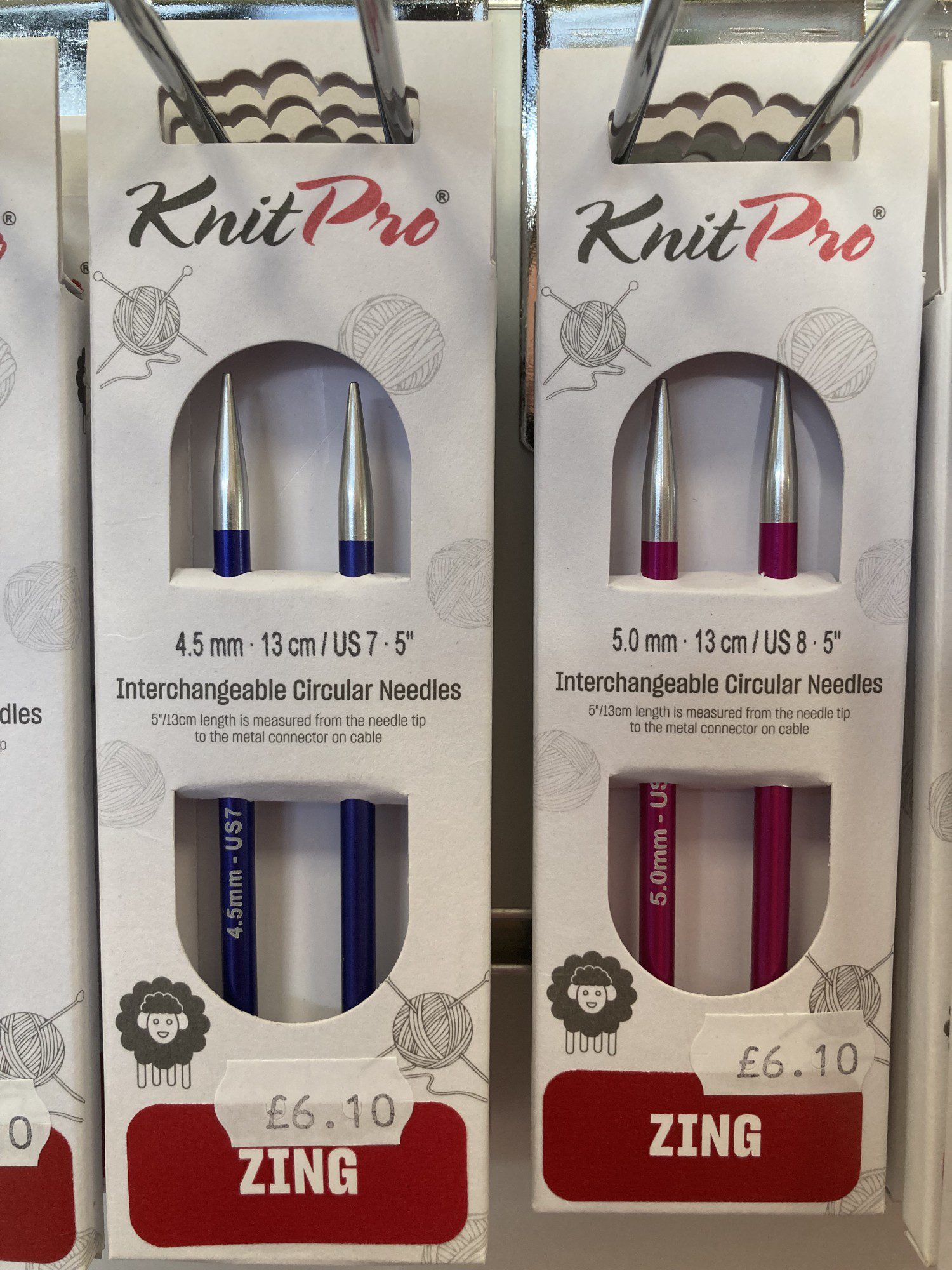 Our collection also includes KnitPro Zing Circular Needle Tips (Interchangeable) available in sizes from 3mm to 8mm. These aluminium tips, available in beautiful metallic shades, can be paired with separately available KnitPro Interchangeable Circular Needle Cables. Made of finest grade stainless steel, these strong and flexible cables come with a cable key and two end caps.