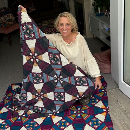The Royal Garden Crochet Blanket Pattern is inspired by Janie's trips to the Green Hotel Mysore. There are lots of areas within the hotel and its surrounding grounds to sit and relax, but one of her favourite places is the coffee shop, situated towards the back of the building within a lovely atrium, that features a terracotta tiled floor and a central open garden of vines and shrubs. This design is based on two aspects of the hotel gardens; the floor tiles found within the atrium coffee shop and the formal, quilt like layout of the main garden, which sits to the front of the hotel. The main garden provides another lovely place to relax, and it features walled flowerbeds, full of lovely gold, orange and pink marigolds, fresh green lawns and smartly pruned bushes. In the evening the garden takes on a magical quality when thousands of fairy lights twinkle in the foliage. UK Crochet Terms£8.95