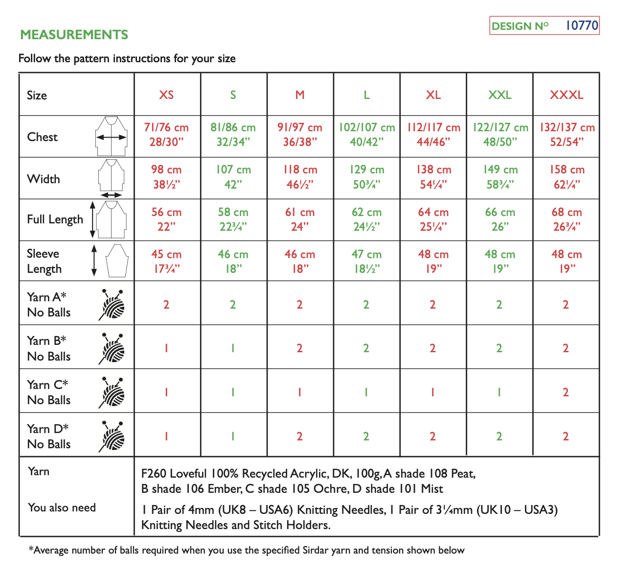 Sirdar Loveful Acrylic DK - Atmosphere Sweater 10770 Knitting Pattern (download) Knit this beginner friendly sweater pattern in simple stocking stitch and ribs, so you can focus on the colour changes to create the sophisticated stripe pattern in autumnal shades of Sirdar Loveful 100% Recycled Acrylic. You Will Also Need: 1 Pair of 4mm (UK8 – USA6) Knitting Needles, 1 Pair of 3¼mm (UK10 – USA3) Knitting Needles and Stitch Holders. Skill Level: Easy Technique: Knitting Pattern Number: 10770