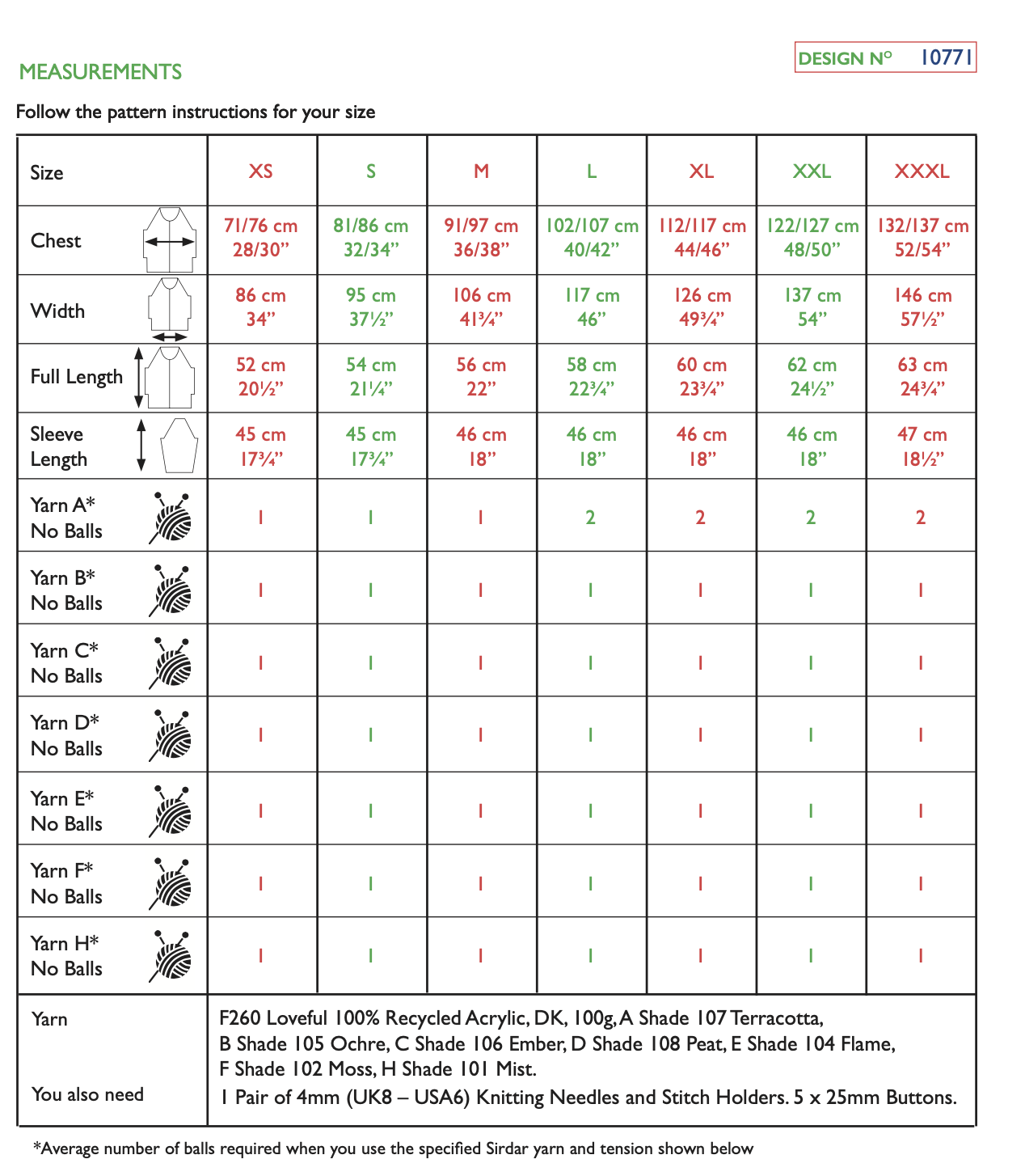 Sirdar Loveful Acrylic DK - Crossing Continents Cardigan 10771 Knitting Pattern (download) A stunning argyle knitted effect cardigan from the Elemental collection. The elongated diamonds and warm shades of Sirdar Loveful 100% Recycled Acrylic are inspired by flickering flames. The Crossing Continents Cardigan is an intermediate knitting pattern, ideal for makers ready to practise their intarsia knitting skills. You Will Also Need: 1 Pair of 4mm (UK8 – USA6) Knitting Needles and Stitch Holders. 5 x 25mm Buttons. Skill Level: Intermediate Technique: Knitting Pattern Number: 10771