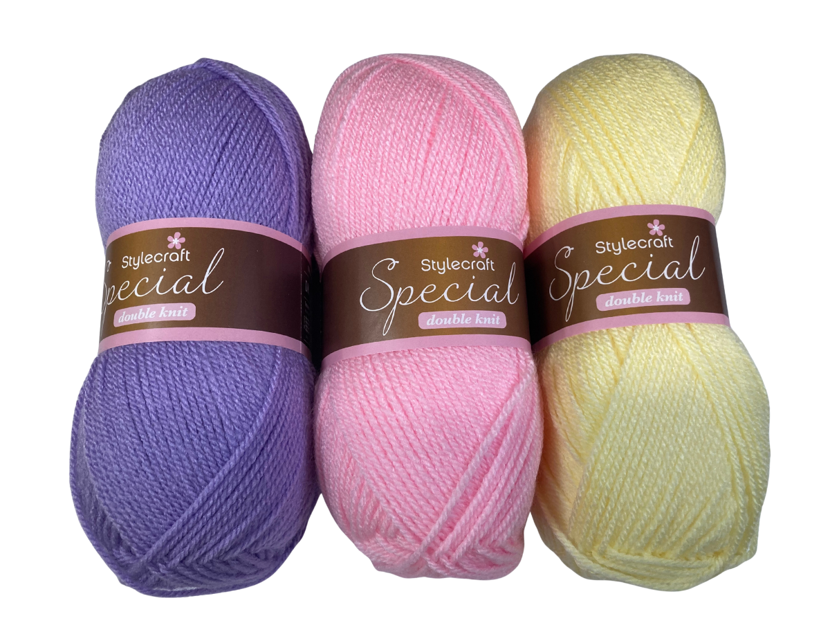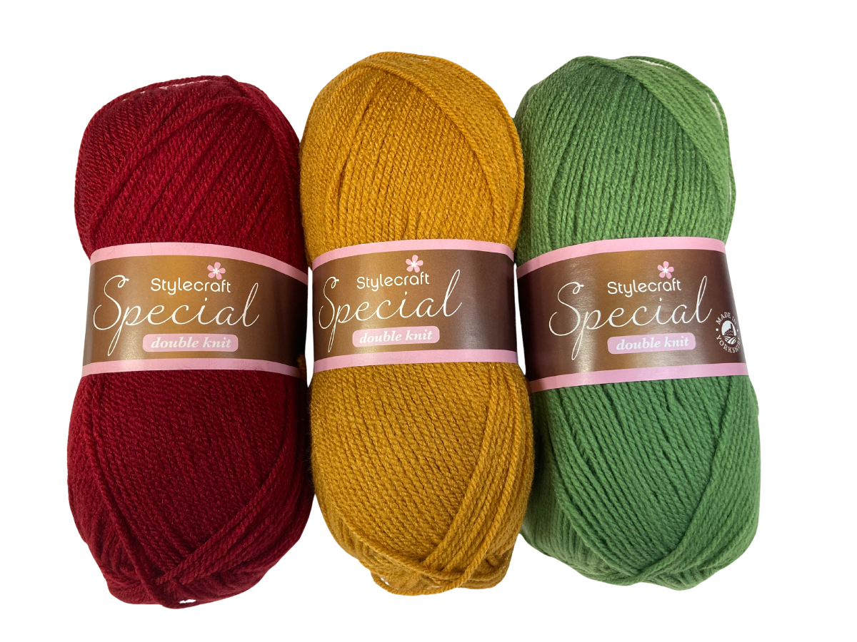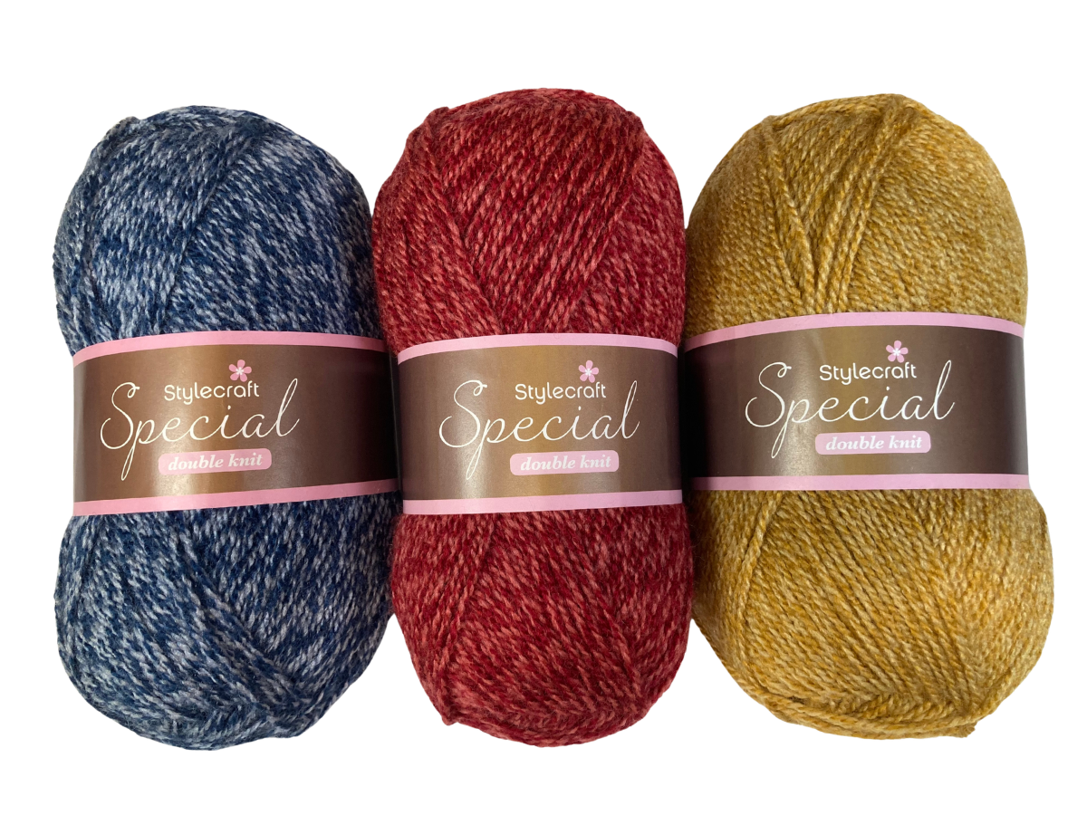 3 balls of Stylecraft Special DK in complimentary shades (123 shades in the range - images are just an example).
