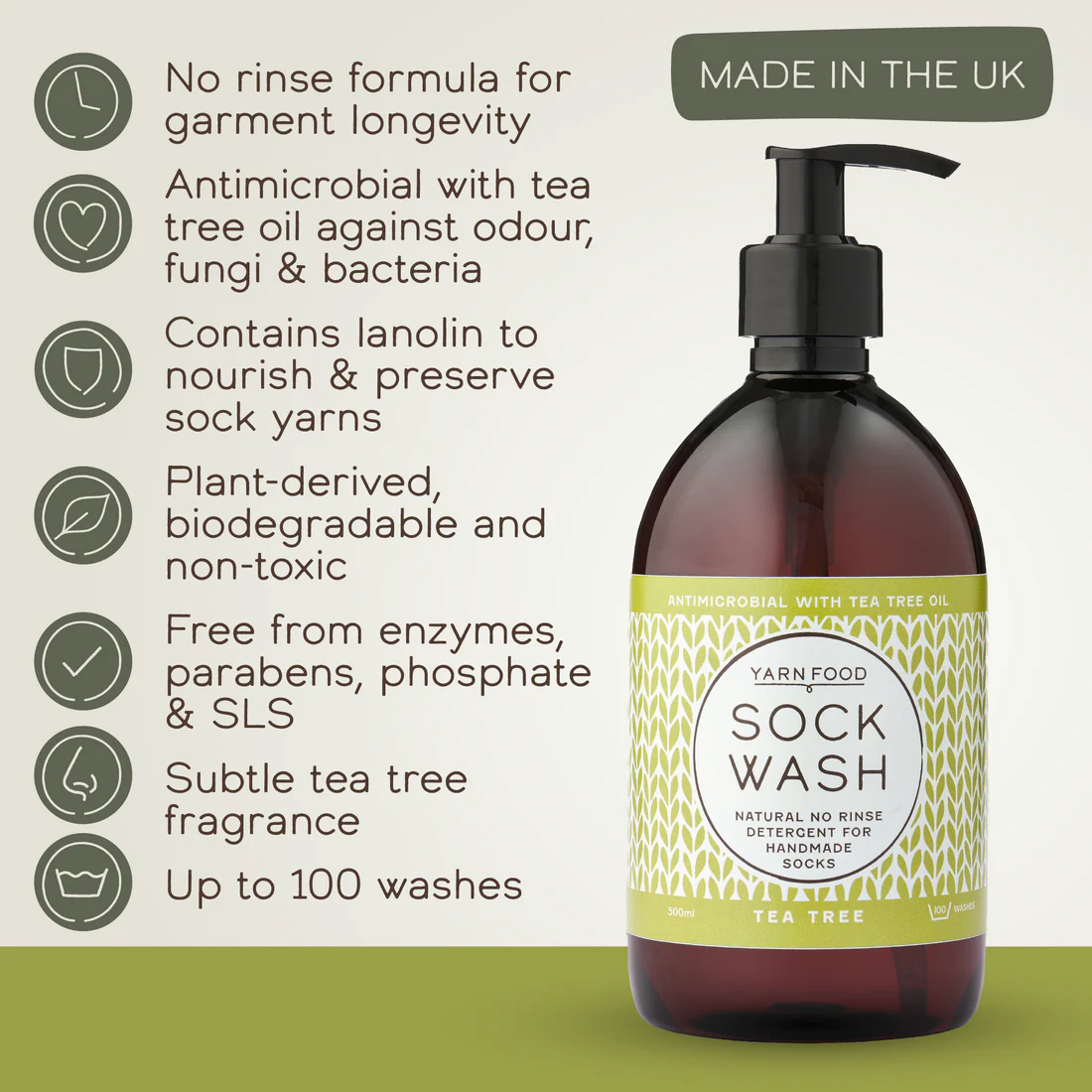 Yarn Food Sock Wash natural no-rinse detergent is expertly designed for knitters to effectively clean, nourish and preserve hand-knit socks so that they last longer.