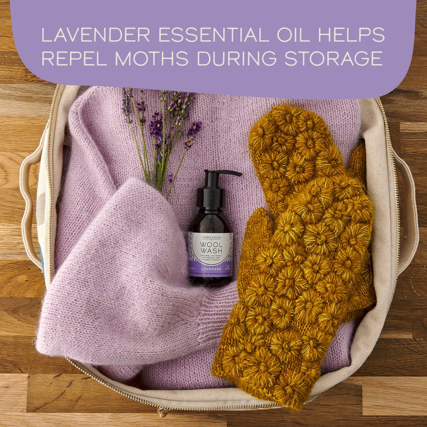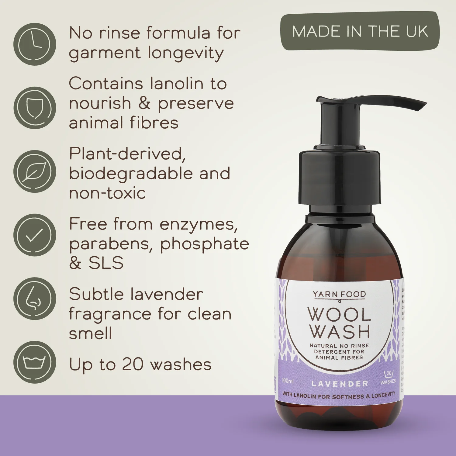 Yarn Food Wool Wash no-rinse detergent is expertly designed for yarn crafters to clean, nourish and preserve wool and animal fibre yarns and their blends naturally.